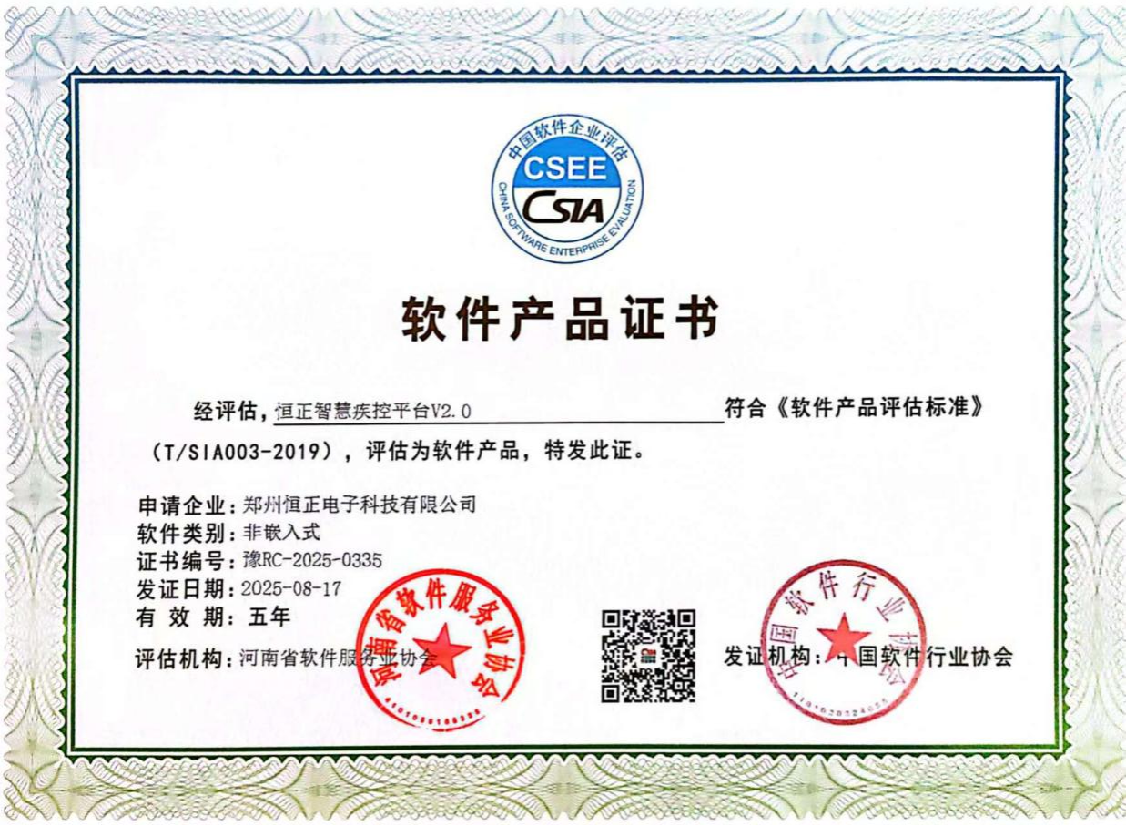 此次 “恒正智慧疾控平臺 V2.0” 獲證,不僅是產品實力的彰顯,更是公司業(yè)務發(fā)展的重要里程碑。相信憑借這一優(yōu)勢產品,鄭州恒正電子科技有限公司將在智慧疾控市場中進一步鞏固地位,拓展更廣闊的業(yè)務空間,為公共衛(wèi)生事業(yè)的信息化發(fā)展持續(xù)賦能。?